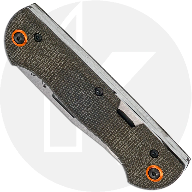 The 317-1 Benchmade Weekender is a handy little slip joint pocket knife that features non locking clip point and spear point blades made of CPM-S30V stainless steel, .090 inches thick, with a Rockwell hardness of 58-60, and a cap lifter. The dark brown canvas micarta handle has ergonomic contours for comfortable grip, and contrasting orange aluminum pivot rings for visual interest. This Benchmade Weekender has a closed length of 4.08 inches, and it weighs 2.28 ounces. Proudly made in the USA.