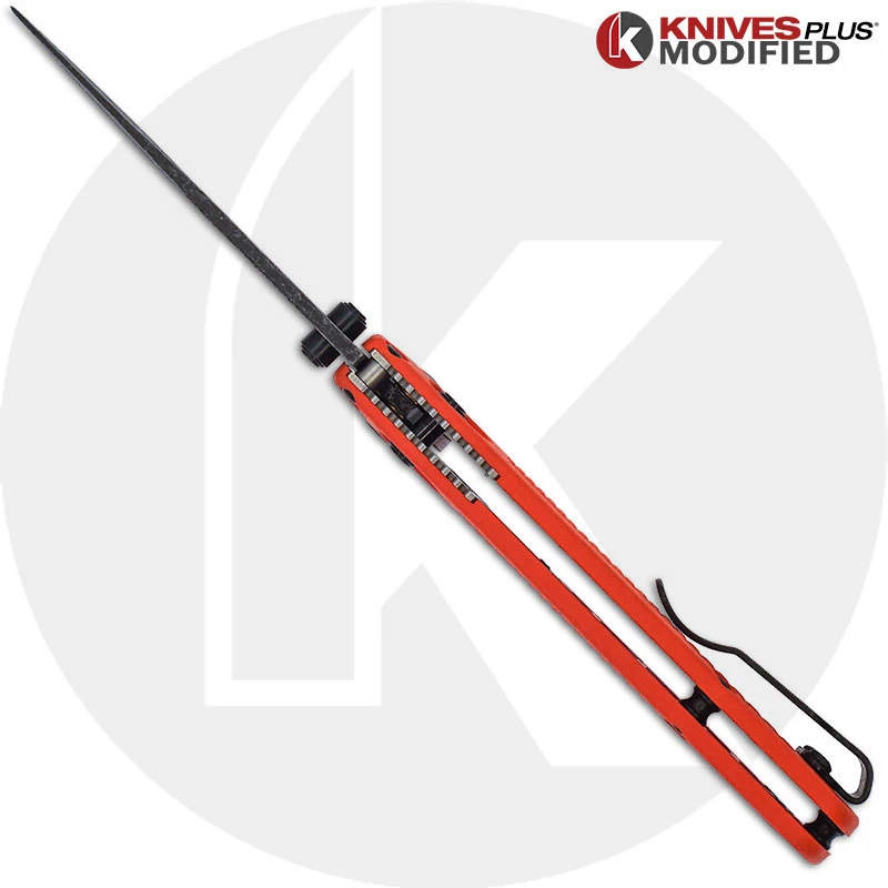 These knives have been modified by the KnivesPlus Team. We take great care in our modifying process to guarantee that they function as intended. Blades have been re-sharpened and are guaranteed to shave. Please note that occasionally, modifications can void the manufacturer warranty.
