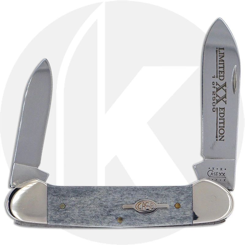 The 07974 Case Limited Edition VII (62131SS) Canoe Knife features a spear blade with Limited XX Edition 1 of 2500 embellishment and a pen blade made of mirror polished Tru-Sharp Surgical steel, with nail nicks for opening. The smooth Black Bone handle, 3 5/8 inches closed, has the Case Saturn Shield and nickel silver bolsters. The Case Canoe Knife weighs 2.9 ounces. Discontinued item, BNIB; made in the USA in 2000.