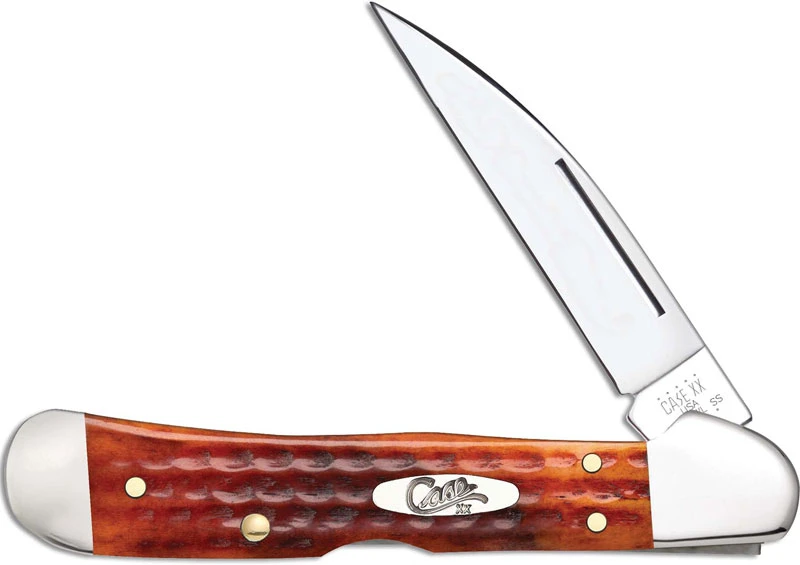 Case Knives: Case CopperLock Knife, Pocket Worn Harvest Orange Bone, CA-7397
