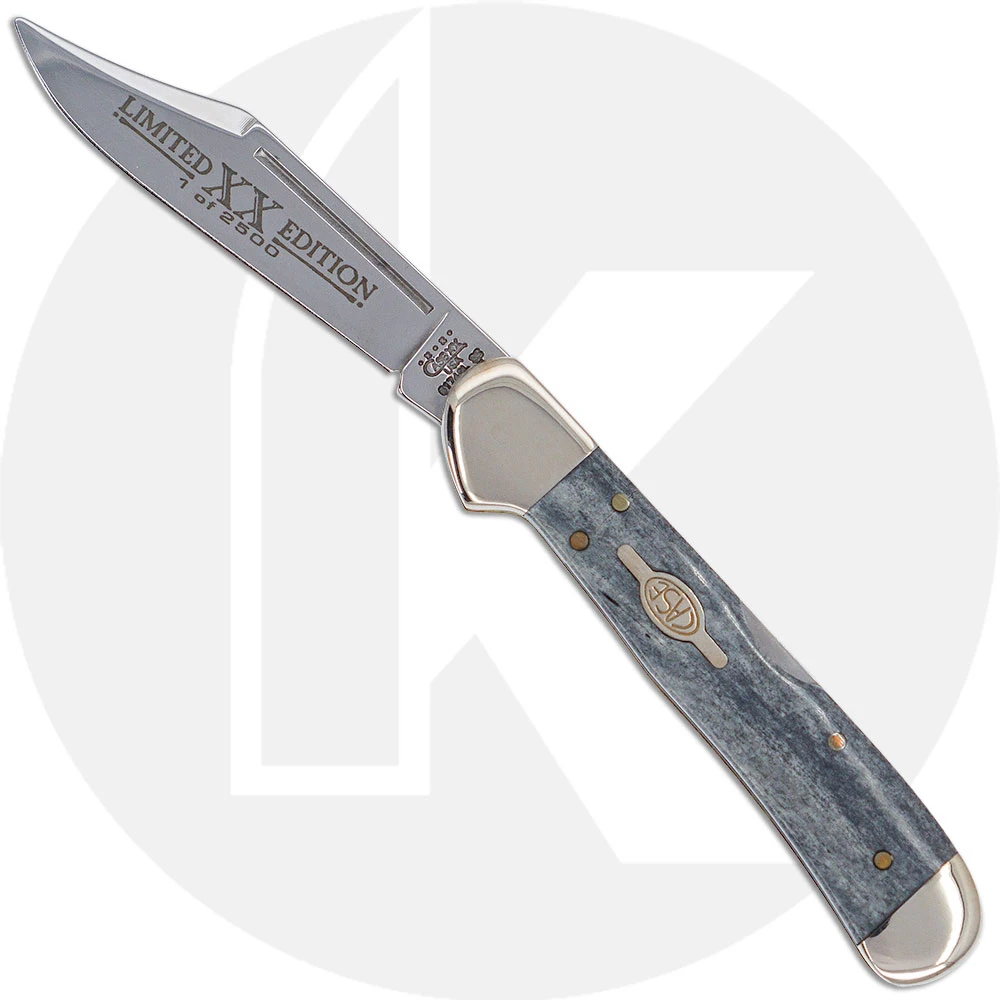 The 08976 Case Limited Edition VIII (61749LSS) Mini CopperLock Knife features a locking clip blade with Limited XX Edition 1 of 2500 embellishment made of mirror polished Tru-Sharp Surgical steel, with a nail nick for opening. The smooth Black Bone handle, 3 5/8 inches closed, has the Case Saturn Shield, nickel silver bolsters and a lockback. The Case Mini CopperLock Knife weighs 1.4 ounces. Discontinued item, BNIB; made in the USA in 2000.