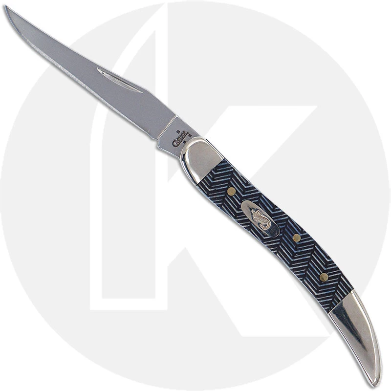 Case Knives: Case Small Texas Toothpick Knife, Navy Blue Herringbone, CA-8644