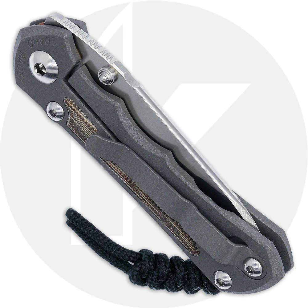 The SIN-1022 Chris Reeve Small Inkosi features a 2.80 inch Insingo blade made of premium CPM S45VN stainless steel, .13 inch thick, with a stonewash finish, a notched thumb rest for secure grip, and a thumb stud for one hand opening. The ergonomic titanium handle, 3.76 inches closed, has a sandblasted finish, Natural Canvas Micarta inlays, sturdy Reeve Integral Lock with Ceramic Ball Interface for smooth opening, a lanyard, and an offset titanium pocket clip mounted at the butt end. The Small Inkosi has an overall open length of 6.56 inches, and it weighs 3.0 ounces. Proudly made in the USA.