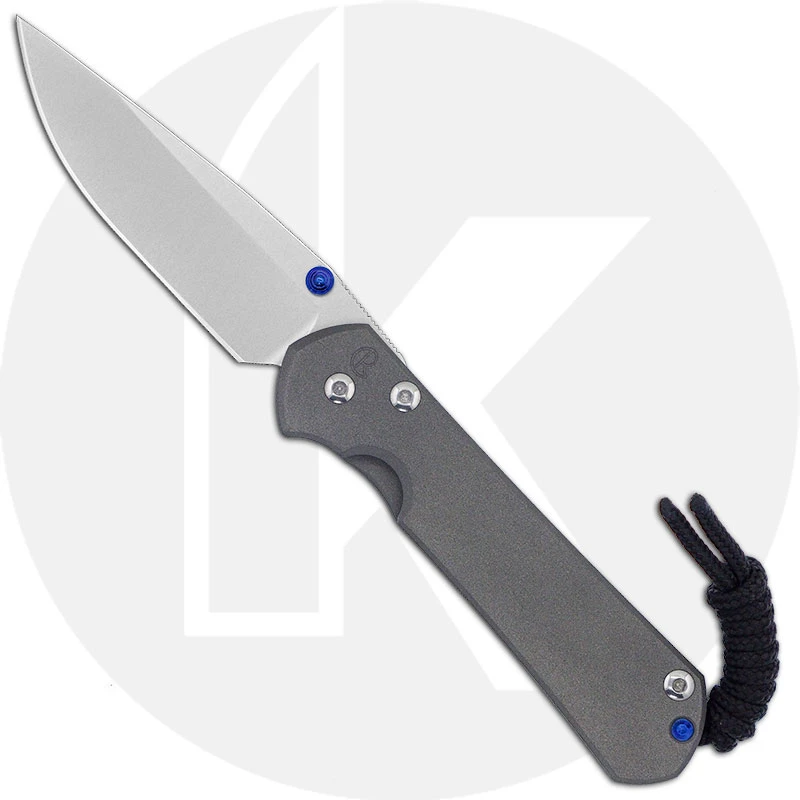 Chris Reeve Knives: Small Sebenza 31, Stonewash Drop Point, Sandblast Titanium, CRK-S31-1000