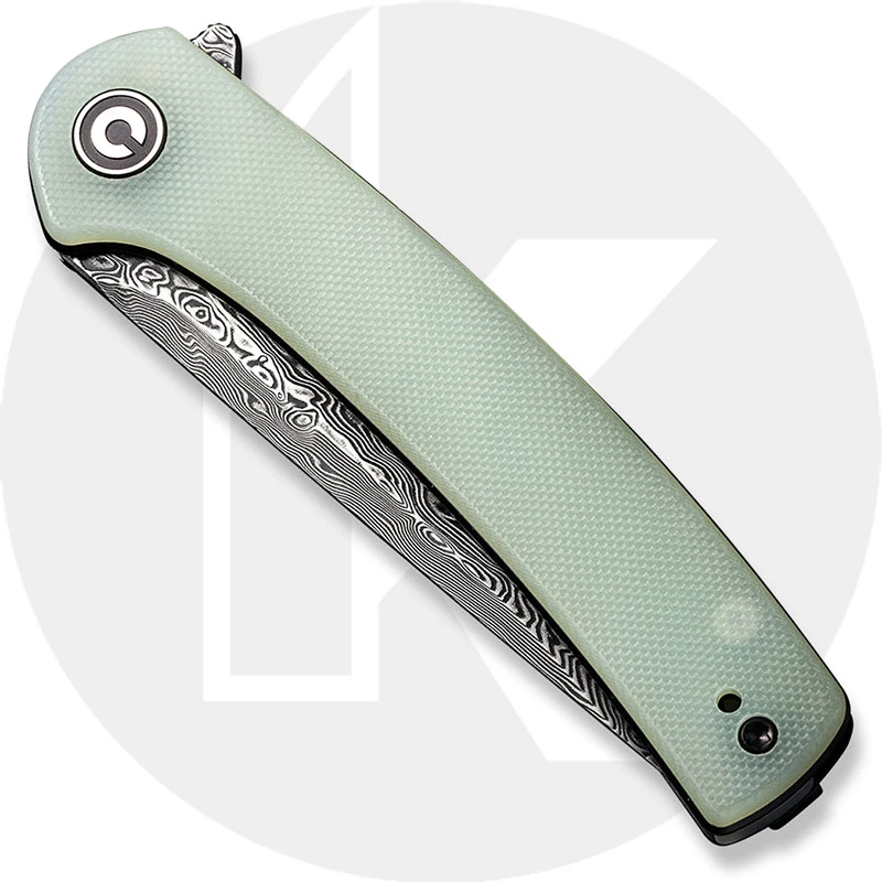 CIVIVI Knives: CIVIVI Mini Asticus Knife, Black Hand Rubbed Damascus, Natural G10 Handle, WE-C19026BDS1
